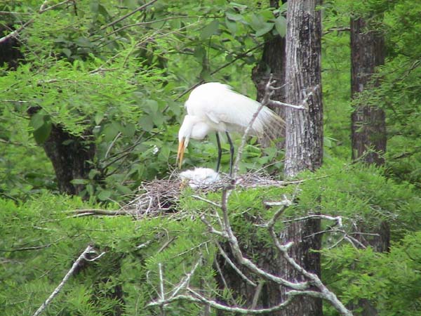 Just outside of Breaux Bridge is Lake Martin, with a swamp along its southern half which becomes a popular rookery at this time of the year. The swamp is leased and protected by the Nature Conservancy and used by between 10,000 and 20,000 birds, including snowy egrets, roseate hornbills, and dark blue herons. The rookery was a joy, the camera is a deep disappointment and is being returned to the store. In the video mode, it jams after 20 seconds of taping and has to be rested (with battery removed) to reset and run again - for possibly another 20 seconds.
