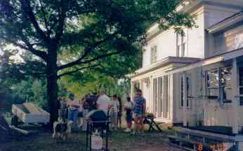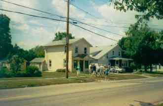 Lester left the commune in 1843. Some say he was disgusted with the squabbling within the group, and, some say, the "free love". Another theory has it that many in the group were jealous of him because he had a house of his own, and did not do any physical labor. We made a motorcade and drove to the site of the commune. 3 of the original houses still stand, the second long house, and around corner, Lester's house (the postoffice was located in his front room). The third remaining structure was built a year or so later by one of the other founders of the commune and was down the street. |