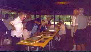 Our activities were limited to indoors. One of the long, most interior tables was covered with shelf paper and cousins put out their family memorabilia - mostly albums and individual pictures. One cousin, who is a real digger (and done most of her research on the internet!) had a huge tree printed out. We all had our family information going back to Reuben & Avis; she took it back from there for 8 or 10 generations -- to Great Britain of the 1500's, and included Ann Boleyn's aunt!