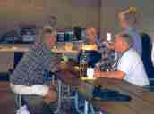 Then it was on to Eureka for a fish fry. What had been the first church in the town (spiritualist, Adventist, Baptist, and one other shared the building) was now a bar that is open several nights a week, and on Fridays includes a fish fry. We filled the space and spilled out into the yard and street. Many pitchers of beer and piles of fried fish were consumed by the group. | |
