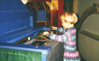 Upstairs, the children play with puppets and marionettes.Nancy is putting on a marionette play.