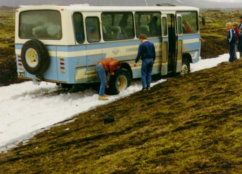 This is how the town records describe Eyvindur: "He has a happy disposition, athletic, an excellent swimmer and wrestler, fast on his feet beyond compare, especially on the steep slopes and so expert at hand-running that he is faster than the swiftest horse. He is tall and thin, with large hands and feet. He has blond curly hair and wears a moustache. He is agreeable in manner, well-groomed and clean, a skilled craftsman in wood and metal, able to read a little but cannot write at all."What is hand running? It is running, using the arms and knuckles as a second pair of legs, like a horse or dog would run. No one in Iceland can do it now, but in the days before roads and wagons, many young men could hand-run. Halla and Eyvindur were forced to leave their farm and become outlaws. Some people say that Eyvindur was caught stealing a rope and ran away to escape hanging. Others say that Halla killed a boy who was working for them. Halla wanted to burn their house down so that people would think they were dead but Eyvindur would not let her do it. They left their children behind. One daughter, named Olof, ran to the next farm, and so the children were saved from starving. Halla and Eyvindur first moved into the hills above the sheep farms. They built a hut near a hot spring, and stole sheep. They cooked the sheep in the boiling water of the spring. After a while the farmers noticed that some sheep were missing and went to capture the outlaws. Eyvindur escaped by hand-running but Halla was captured and taken to the settlement. The next winter Eyvindur had a very hard time. He caught wild birds and ate them raw. In the spring, Halla escaped from the town and joined Eyvindur and they moved to another area where again they built a hut of stones and sod, near to a spring. They lived there for 5 years, stealing sheep and other things from the farmers. Again, the farmers followed the sheep tracks and discovered Eyvindur and Halla's hut. Eyvindur and Halla had a narrow escape and just had time to bury their tools in a swampy place and run away to some lava caves. The farmers burned the hut and took back the sheep, but they did not catch the outlaws. The next winter, they were very hungry. Eyvindur was saying his prayers, but Halla said that would do no good. Then Eyvindur looked out the door, and there was a horse! They killed the horse and ate it, raw, all that winter. They used the skin as a door to their hut.