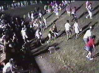 But my story is not over! When the shouting and the cheering ended, the crowd rose and began to move to the pedestrian tunnel. Everyone was in a good humor, no one seemed to mind the crush, or the terrible bottleneck the tunnel represented. Inside it, children screamed and yipped in falsetto, joyously listening to the echo it made. On the other side of the tunnel, the crowd fanned out, running across the lawn, jumping into the ditch that defined the original fort, climbing up the wall of the redoubt. It looked like a scene from a stalag escape movie. |