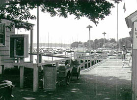 Our boat was moored in the center of the harbor. The club had a tender, and you blew a horn to let the tender know that you needed to be fetched. Usually my father dropped us at the dock, and then sailed back to his mooring. The boy who ran the tender was alerted that the horn would soon be blowing for him.
