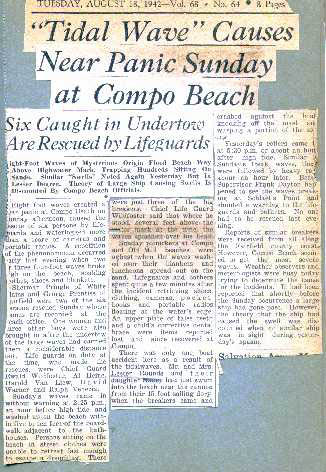 Click here to read the newspaper account of the story I am about to relate. One summer day, when I was 7 or 8, my father sailed the family sailboat from Cedar Point, around the breakwaters, and anchored in deep water above the beach. My mother was on the beach with a picnic lunch, and we swam ashore to join her.
