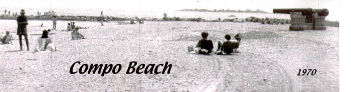 Compo Beach is a natural formation, a dump of those glacial pebbles that make up most of the Connecticut shore. It faces Long Island Sound and is backed by a man-made harbor called "Cedar Point". There are now huge stone breakwatrs, put into place in the hopes of keeping the sand eroding away, sand which is barged in each spring.