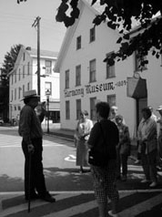 Historic HarmonyHarmony is located north of Pittsburgh and many buildings in the town are original to it's founding as a Harmonist settlement in 1804. The history of the Harmonists is told, with a slide show of the German village from whence they came. An architect leads the group on a walking tour of Historic Harmony, pointing out the Harmonist buildings and later Mennonite buildings, and the different features of each. Lunch is at the 19th century Harmony Inn, afterwhich hostelers are transported to important sites in the area, including the Harmonist and Mennonite cemeteries.