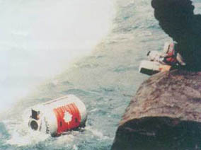 But our most memorable trip came in 1993, when 2 Swiss friends came to Pittsburgh to visit. We had exhausted the Pittsburgh sites, and had a full day before they were to board the plane that continued their vacation westward. "We could go to Niagara!" we suggested. "it's only a few hours away. Spend a day there and come back that night." 5 hours later we were pulling into a motel in Buffalo. This gave us an early morning crossing into Canada, by the Peace Bridge. We approached the falls along the Niagara highway. "Sneaking up on the falls", we like to think. It was early morning, with very little traffic. Passing the park just above the falls, we saw a couple of VW busses and some people milling about, but gave it no thought. We arrived at the falls and parked; at this hour there were plenty of spaces available, and headed for breakfast at the restaurant on table rock. Larry made a stop in the restroom; and the three of us waited outside the restroom door (as we had so often in Iceland). A woman came by very excited. "I just saw a man go over the falls in a barrel!" she said. When Larry rejoined us, we all kidded him, "you missed the excitement! A man just went over the falls!" He didn't believe us.