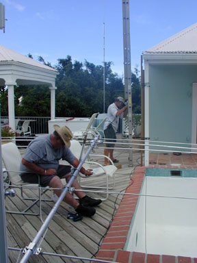 Above - Ted W4ZE assembles the FORCE 12 beam while Paul NP2JF prepares the ladder.