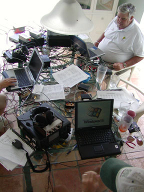 And then the gang moved inside to set up the transceivers and networked computers. Not difficult and the bugs were soon worked out.