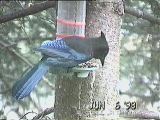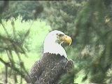 One afternoon, while sitting in the livingroom, we saw an eagle swoop over the porch and settle on a tree just in front of it. A photo opportunity! I grabbed my camera and began taping through the glass door, then Carl slid it open and I sidled out (using my best tai chi creep) trying to get the best view of the eagle that I could without scaring it away. The tape ran as I crept closer and closer to the porch railing and the tree. The eagle eyed me, but did not move. Soon I said to Carl, who had followed me out, "I'd like to get tape of him flying away ---" Carl clapped his hands, crying out "shoo, shoo" but the eagle did not move. The others came out, in a less quiet fashion and still he did not move. I taped him from a distance of 12 or 15 feet for about 10 minutes. Finally -- his own idea -- he flew down the slough. Seeing such a large, magestic, wild bird up so close was a thrill. Someone said that when the salmon were running, the eagles were as common as starlings. Helen reported that a few weeks after we left, she saw two eagles lock talons and spiral to earth, hitting the mud flats below her house. She and a neighbor ran out, to see if either bird was hurt by the fall. But they both got up and continued their flight/pursuit down the slough. Was it a territorial dispute or a mating ritual? She doesn't know. |