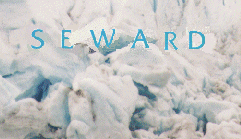 We stopped again at the Exit Glacier, just outside of Seward. As we turned off the main road and headed toward the glacier, there were signs marking the year that the glacier had ended at that point. The parking lot was around year marker 1950, and then we followed a well marked path toward the glacier itself. Wide streams edged the flat area left by the glacier, and large boards had been laid across for the benefit of tourists. We climbed the moriane at the far end of the field, and there it was, melting and dripping - Exit Glacier! The ice within reach was dirty and granular, further up it displayed the beautiful blue tones one comes to expect with glaciers. It was a very short drive from Exit glacier to the city of Seward. | |