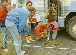 This is how the town records describe Eyvindur: "He has a happy disposition, athletic, an excellent swimmer and wrestler, fast on his feet beyond compare, especially on the steep slopes and so expert at hand-running that he is faster than the swiftest horse. He is tall and thin, with large hands and feet. He has blond curly hair and wears a moustache. He is agreeable in manner, well-groomed and clean, a skilled craftsman in wood and metal, able to read a little but cannot write at all."What is hand running? It is running, using the arms and knuckles as a second pair of legs, like a horse or dog would run. No one in Iceland can do it now, but in the days before roads and wagons, many young men could hand-run. Halla and Eyvindur were forced to leave their farm and become outlaws. Some people say that Eyvindur was caught stealing a rope and ran away to escape hanging. Others say that Halla killed a boy who was working for them. Halla wanted to burn their house down so that people would think they were dead but Eyvindur would not let her do it. They left their children behind. One daughter, named Olof, ran to the next farm, and so the children were saved from starving. Halla and Eyvindur first moved into the hills above the sheep farms. They built a hut near a hot spring, and stole sheep. They cooked the sheep in the boiling water of the spring. After a while the farmers noticed that some sheep were missing and went to capture the outlaws. Eyvindur escaped by hand-running but Halla was captured and taken to the settlement. The next winter Eyvindur had a very hard time. He caught wild birds and ate them raw. In the spring, Halla escaped from the town and joined Eyvindur and they moved to another area where again they built a hut of stones and sod, near to a spring. They lived there for 5 years, stealing sheep and other things from the farmers. Again, the farmers followed the sheep tracks and discovered Eyvindur and Halla's hut. Eyvindur and Halla had a narrow escape and just had time to bury their tools in a swampy place and run away to some lava caves. The farmers burned the hut and took back the sheep, but they did not catch the outlaws. The next winter, they were very hungry. Eyvindur was saying his prayers, but Halla said that would do no good. Then Eyvindur looked out the door, and there was a horse! They killed the horse and ate it, raw, all that winter. They used the skin as a door to their hut.